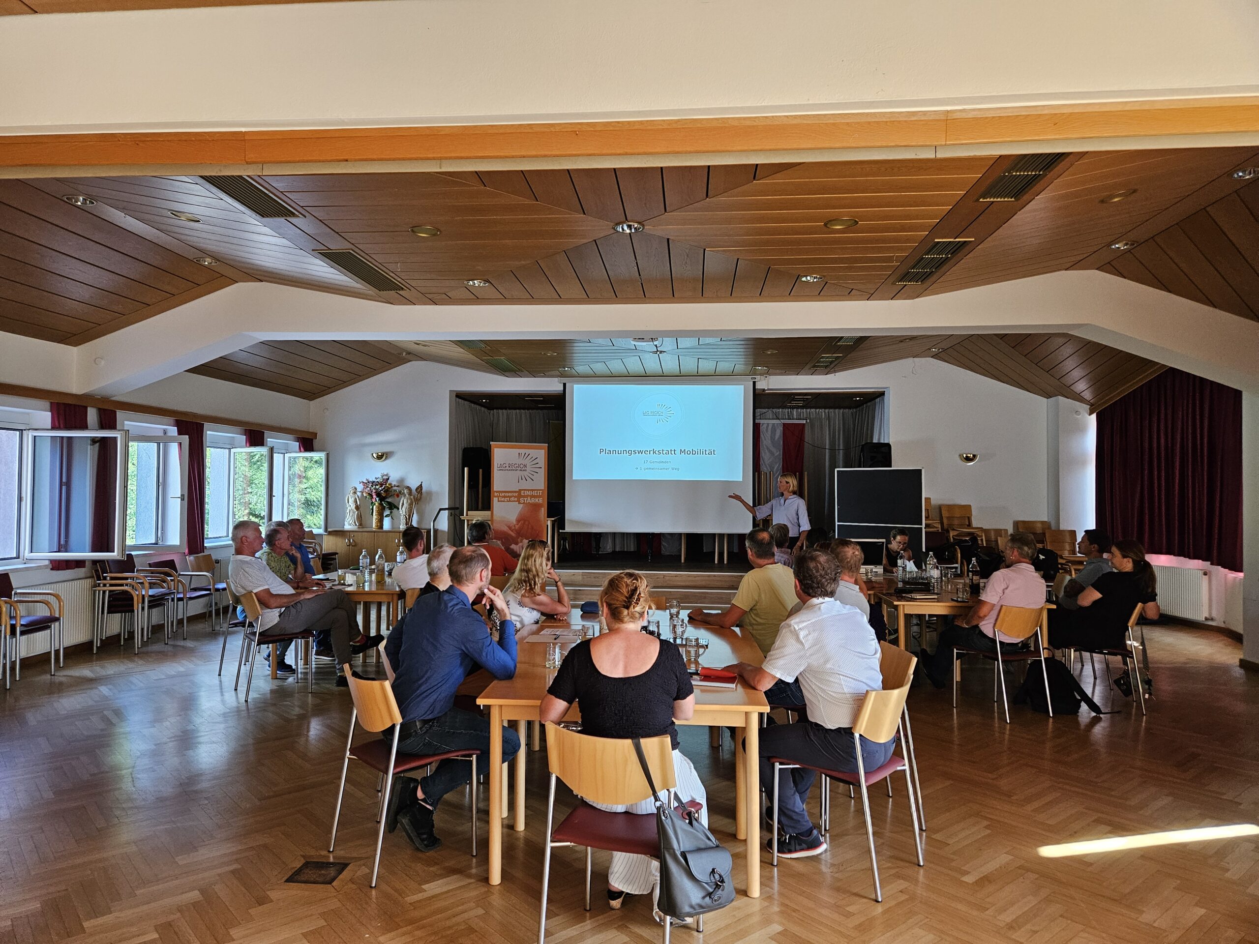 Im konstruktivem Austausch fand die erste Planungswerkstatt zum Thema Mobilität der LAG Carnica-Klagenfurt-Umland im Kultursaal der Gemeinde Ebenthal statt. Gemeinsam mit Vertreterinnen und Vertretern der teilnehmenden Gemeinden wurden zukunftsfähige Lösungen für die Mobilität in der Region erarbeitet. Grundlage waren die Ergebnisse einer umfassenden Umfrage, die klare Handlungsfelder sichtbar machte, u.a. Verbesserungsbedarf bei Radwegen, öffentlichem Verkehr und Mikro-ÖV.